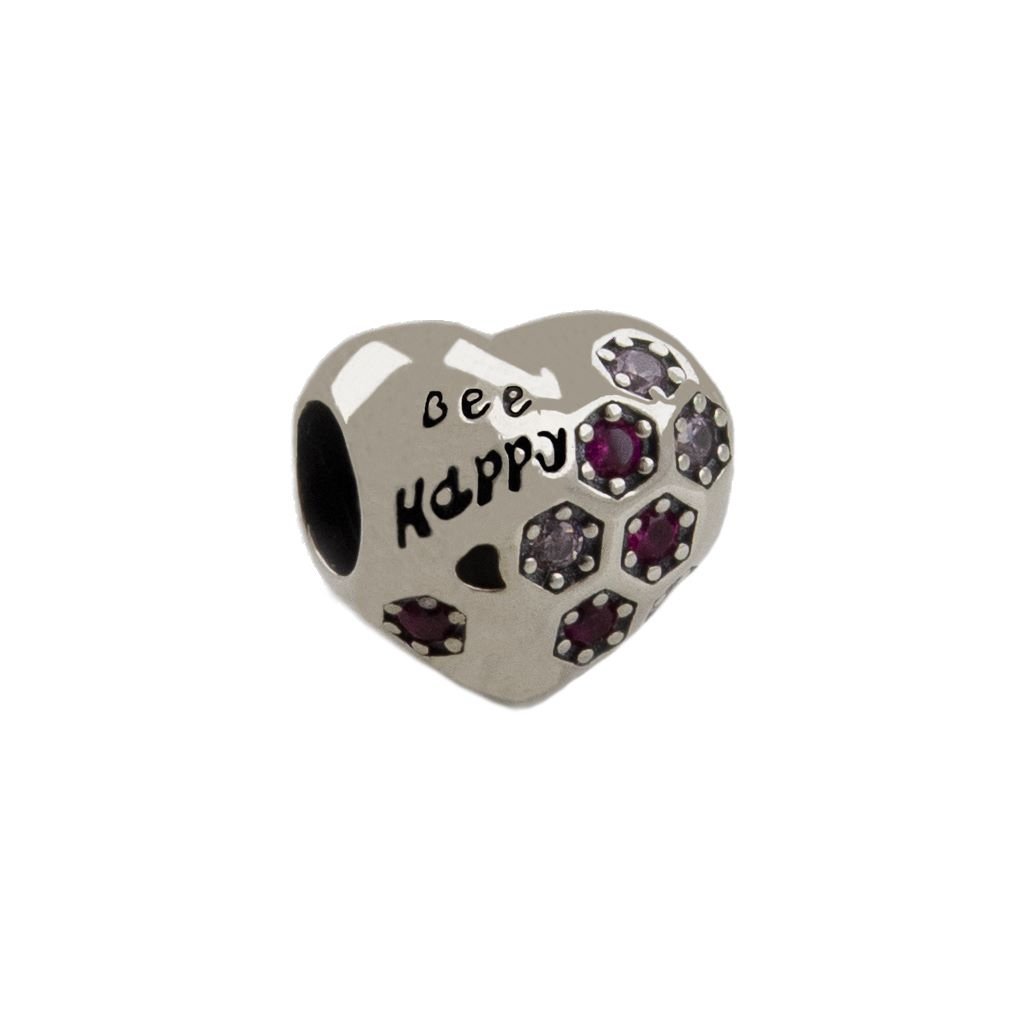 Berloque Prata 925 Separador Coração Bee Happy. Estoque Limitado – Sob Consulta –