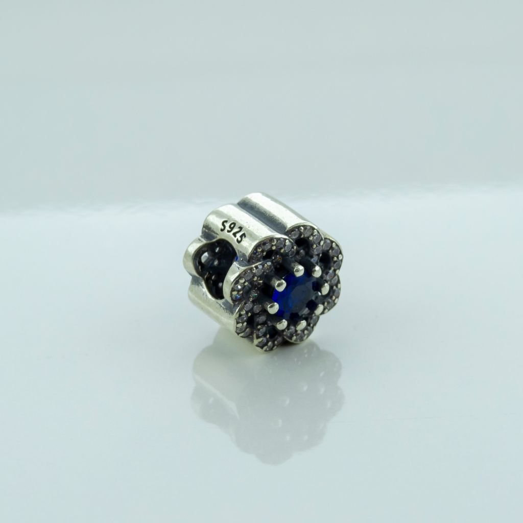 Berloque Prata 925 Separador Flor (Pedra Azul). Estoque Limitado – Sob Consulta –
