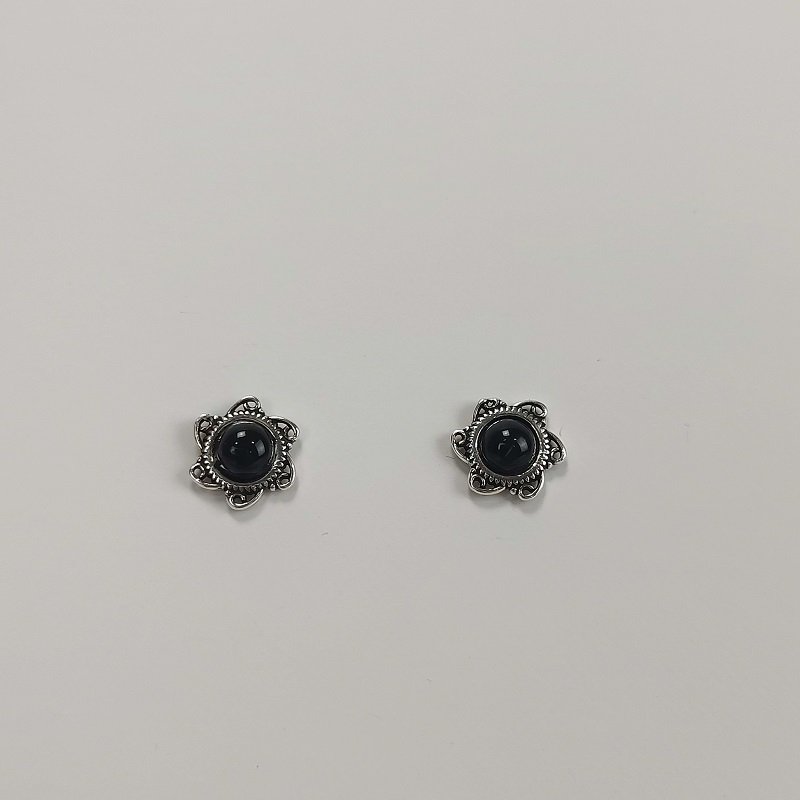 Brinco de Prata 925 Envelhecido Pedra Preta Estrela. Estoque Limitado - Sob Consulta -