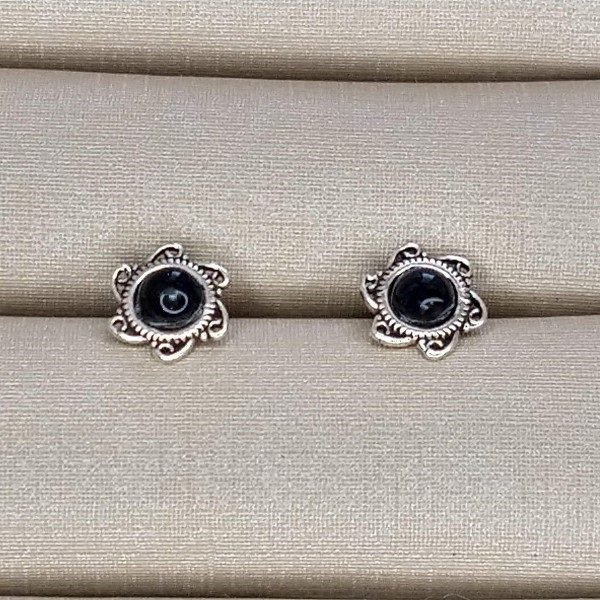 Brinco de Prata 925 Envelhecido Pedra Preta Estrela. Estoque Limitado – Sob Consulta –