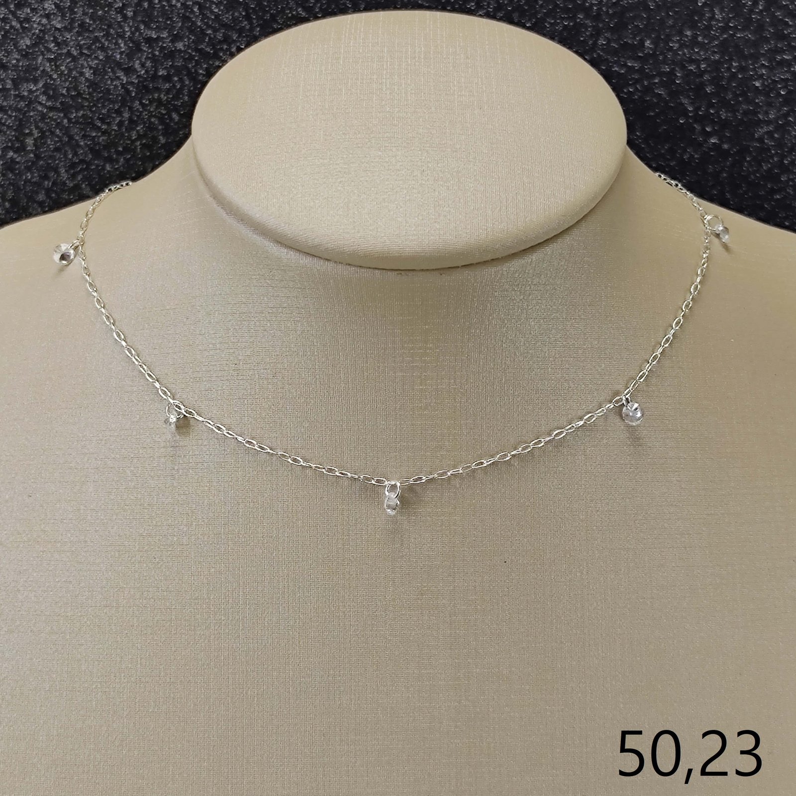 Choker Prata 925 Pingentes Ponto de Luz Zircônia Redonda 4mm. Estoque Limitado - Sob Consulta -