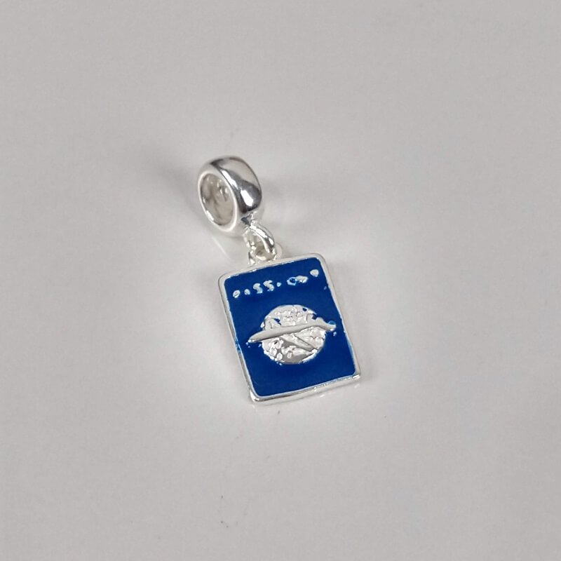 Pingente Prata 925 Berloque Resinado Passaporte. Estoque Limitado – Sob Consulta –